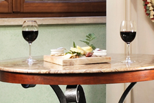 a travertine and marble bathroom. Each is also equipped with Wi-Fi, PayTV, air