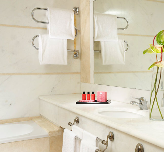 Our Royal Double guest rooms measure 37m² and all have a double bed or twin beds,