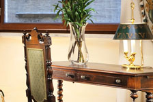 surrounded by the harmony of beautifully crafted antiques and fine fabrics, while