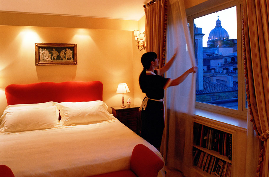 room. They have either a double bed or twin beds, a bathroom of prized marble,