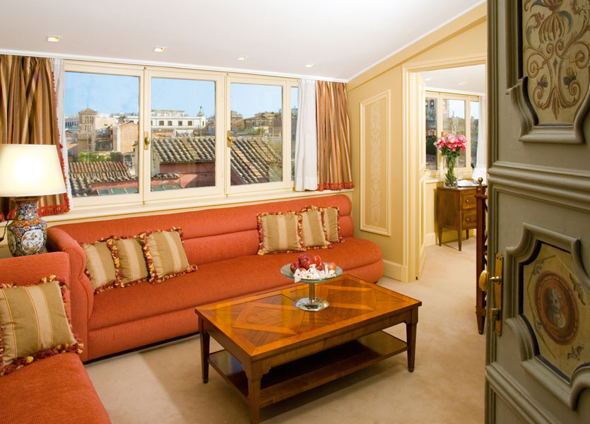 The extraordinary harmony of the antique furniture in the Executive Suites creates a cosy ambience of warmth and relaxation. Everything is just where it should be, placed there by the invisible hand of a proud proprietor: a cushion thrown casually on the bed and a flower in a vase in the sunny living room. The modern technology and the most elegant of comforts ensure a deep sense of wellbeing as you relax in your Roman residence.