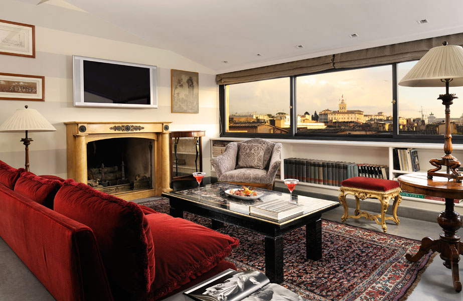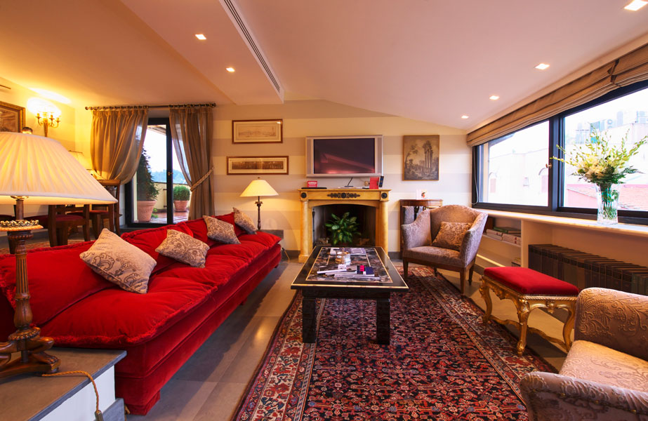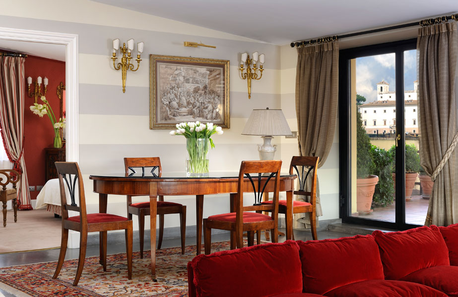 If Rome is Caput mundi, the capital of the world, then our Presidential Suite is the most magnificent place from which to admire its ageless beauty. Located on the top floor of the building, it is famous for the breathtaking views its 200m² terrace offers. Surrounded by the fragrance of jasmine bushes and wild orange trees, your eyes will be regaled with an unforgettable panorama that sweeps from Villa Medici all the way to the Vittoriano.