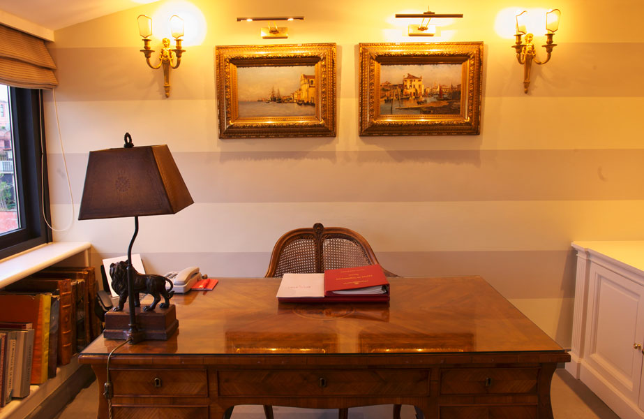 desk, personal items that recall travels to the far corners of the world.