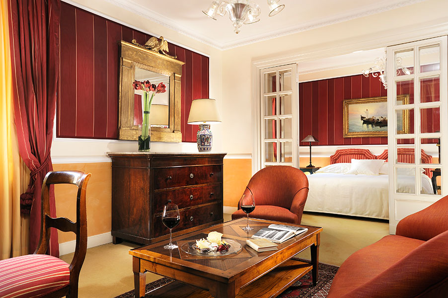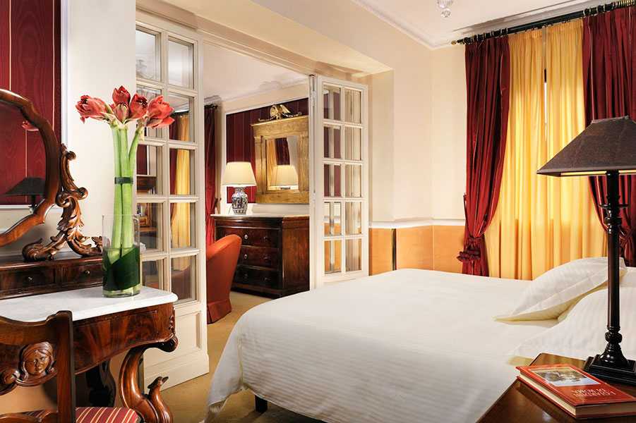 In the heart of the Eternal City, our Royal Junior Suite with separate parlour are the very essence of style and elegance. The expert eye of the interior designer has crafted ambiences composed as if for a picture: on a field of colour created by the rugs, curtains and carpet, all of the pieces come together as though they were made for one another, meant to be a part of this refined and harmonious whole.