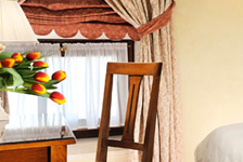 Double guest rooms. Here the wood-beamed ceiling, fine carpets, exquisite interior