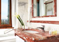 Our Classic Double rooms have views over the garden, a wood-beamed ceiling, marble