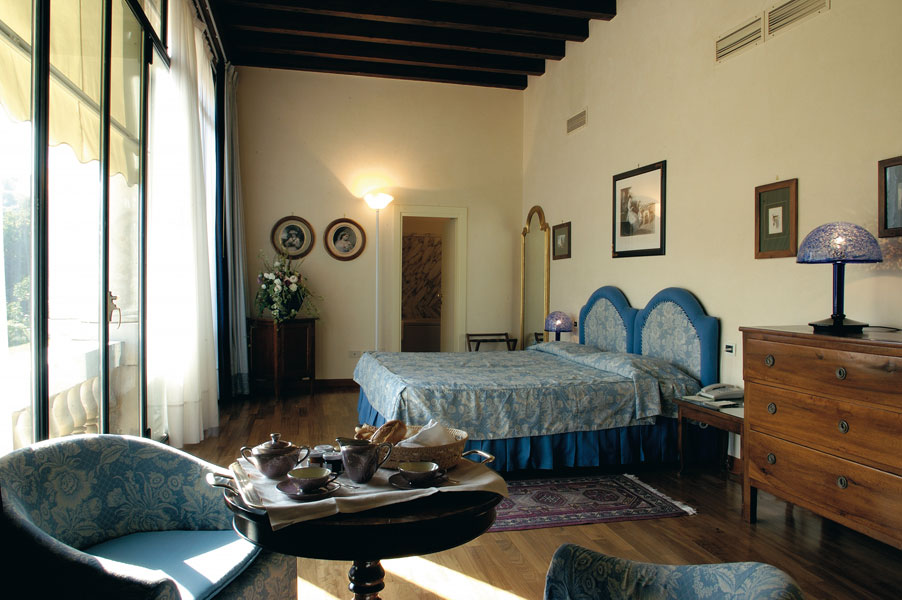 the most precious of fabrics, a spacious marble bathroom and a French door that