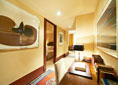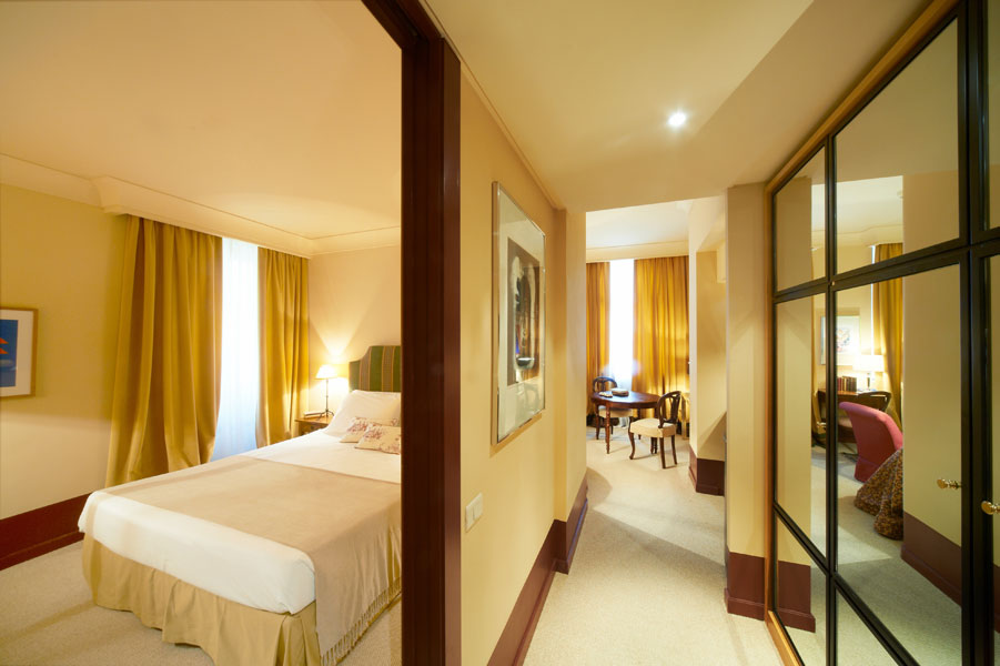 Our Royal Duplex Apartments range in size from 50 to 70m² and cover two floors. They all have an ample parlour with comfortable sofas, a hidden kitchenette and a bedroom loft. Some of the apartments boast two Carrara marble bathrooms and study which can also be used as a private sitting room or an extra bedroom. They all include such technological comforts as air conditioning, professional LCD LED TV with Ambilight, on-demand entertainment, Pay TV, high speed internet connection, Wi-Fi, a minibar and a safe for your valuables.