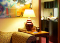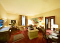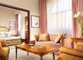 The Royal Suite measures some 65m² and includes a spacious parlour with a reading corner, a bedroom with double bed and a small hidden kitchenette. The marble bathroom is large and has a bathtub. Each suite also has air conditioning, professional LCD LED TV with Ambilight, on-demand entertainment, Pay TV, high speed internet connection, Wi-Fi, a minibar and a safe for your valuables.