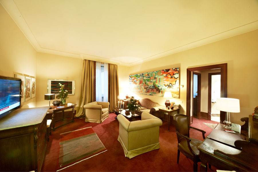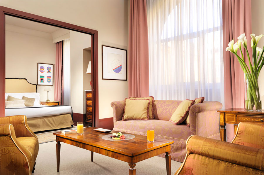 Our Royal Suites have fascinating personalities that combine the understated elegance of the 17th century convent with the inimitable class of a contemporary residence, and the contrasts are beautifully complementary. The antique furniture weds wonderfully with paintings inspired by contemporary metropolitan graffiti and the refined classic style of the living area, with its lively colours, blends to perfection with the linearity and softer peaceful hues of the bedroom. All together, the suite is a refuge of natural comfort and exclusive wellbeing.